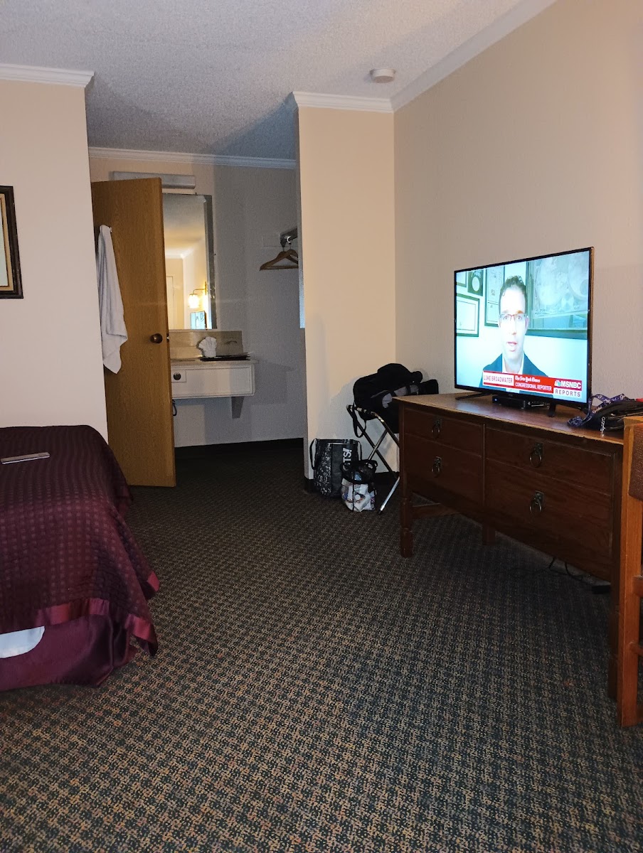 Had to stay here 3 days due to wind problems driving an RV. Parking was nice and big for my rig and the service was fantastic! Room was clean and although a little outdated, everything worked. Room was big and very comfortable. They have fridge and microwave and cool AC! The TV was awesome because it wasn’t the real small ones you usually see in hotels. It was big and the channels were endless! I didn’t even know what to watch cause they have so many channels with super good choices. Service was superb! Super friendly gentleman in front desk and he was super accommodating. Price was also very very good! I would highly recommend this place, especially if you’re looking for comfort and cleanliness over aesthetics. Fantastic stay! Thank you!! Annette